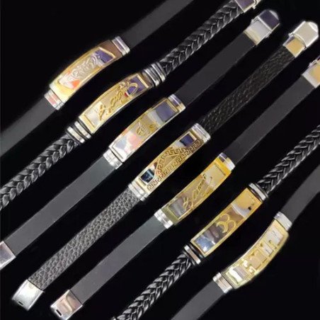 Toptan Çelik ve Deri Bileklik - Lüks Çift Renk Modeller