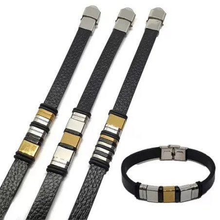 Toptan Çelik Detaylı Deri Erkek Bileklik | Şık ve Dayanıklı Modeller