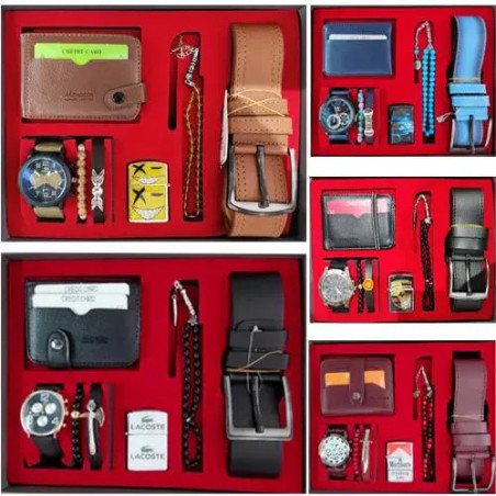 Toptan 7’li Erkek Kombin Saat Seti | Hediye Kutulu Aksesuar
