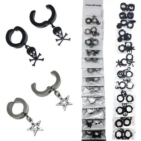 Toptan sıkıştırmalı figürlü çelik küpeler, modern ve karışık tasarımlarıyla dikkat çeker. Toptan satış için idealdir.