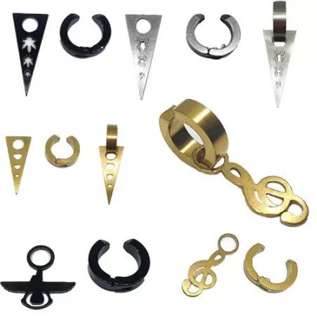 Toptan karışık sıkıştırmalı figürlü çelik küpeler. Deliksiz kulaklara uygun, modern tasarımlı küpe modelleri toptan avantajıyla.