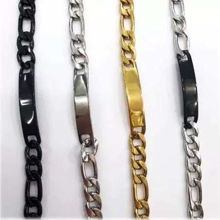 316L paslanmaz çelikten üretilen bileklik, yüksek dayanıklılık sunar. Kalın formu sayesinde özellikle geniş bilek yapısına sahip kullanıcılar için idealdir. Siyah, altın ve gümüş renk seçenekleri mevcuttur. Kuşgözü bağlantılar bilekliğe sportif bir hava katarken, plaka kısmı klasik şıklık sunar.