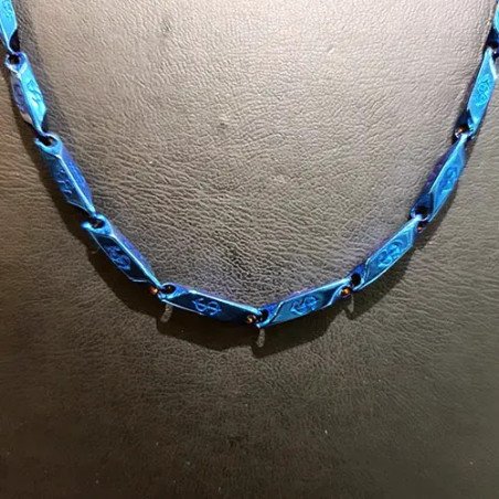 Çelik orta desenli mavi kibrit kolye VRC‑27B, toptan satışa özel olarak sunulan, göze çarpan canlı mavi desenleriyle dikkat çeken şık bir modeldir. Paslanmaz çelikten üretilmiş bu kolye, hem sağlam hem de unisex tasarımıyla öne çıkar.